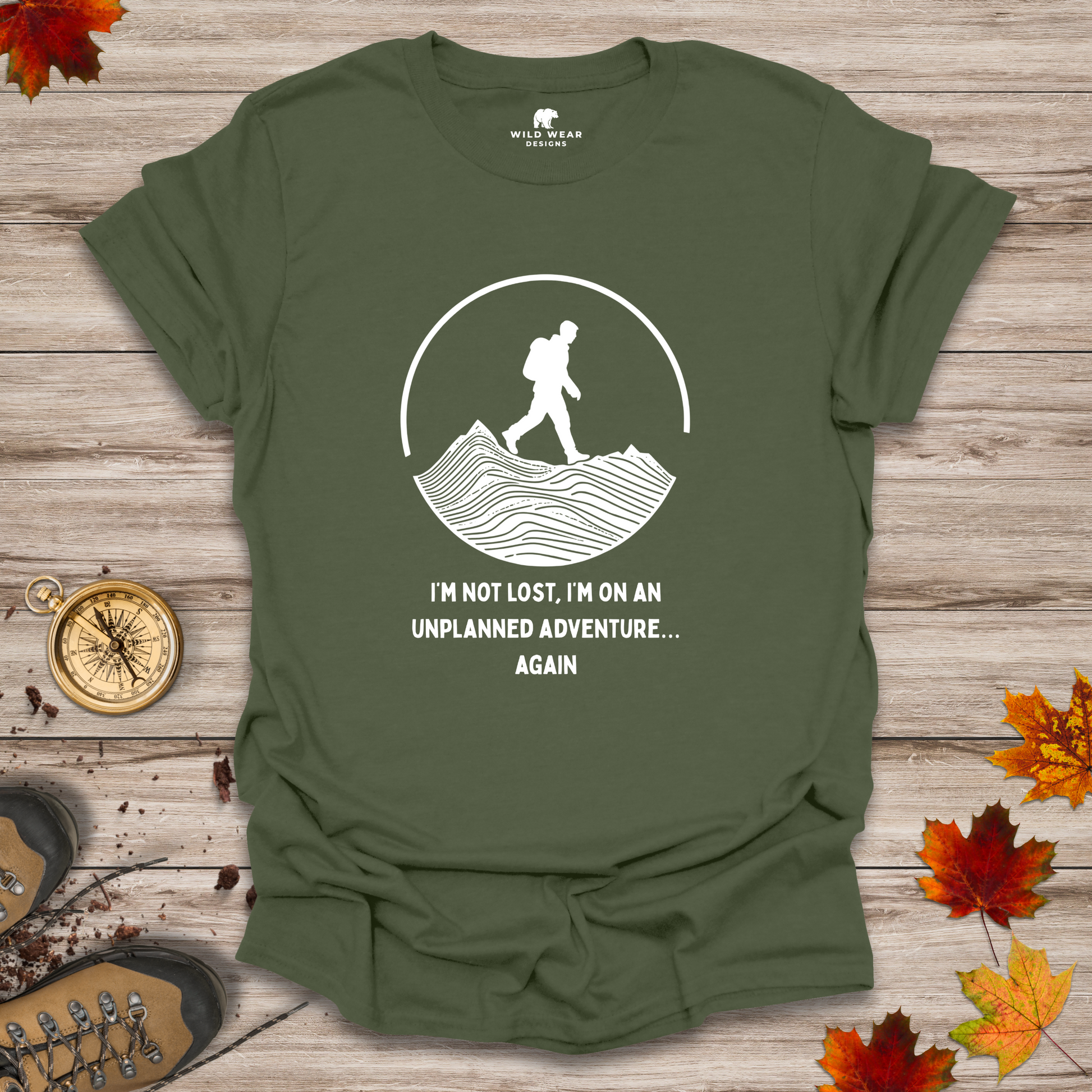 The Accidental Adventurer T-Shirt is for those wild souls who don’t need maps, just a sense of humor and maybe some snacks. Featuring the cheeky quote “I’m not lost, I’m on an unplanned adventure… again”, this tee is perfect for hikers, road trippers, and trailblazing mischief-makers.