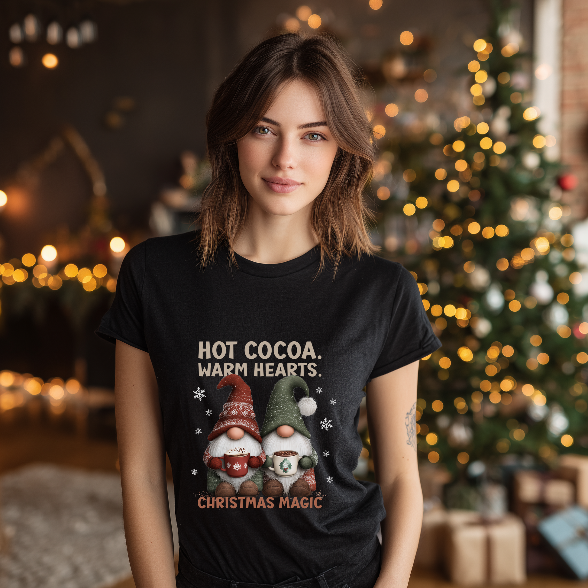 from 0 reviews“These gnomes know the real holiday recipe: hot cocoa, warm hearts, and just the right amount of Christmas magic. Cozy up in this festive tee that’s sweeter than marshmallows in your mug. Perfect for gift-giving, matching moments, or just gnome-ing around in style.”