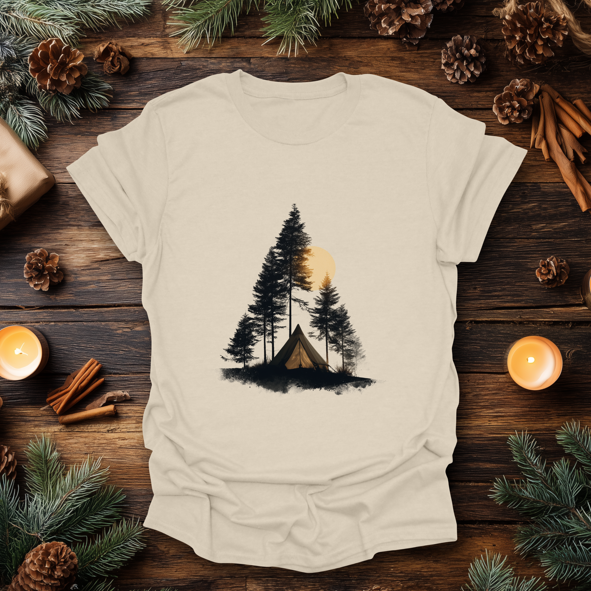 from 0 reviewsEscape into the wild with this serene design featuring a glowing tent beneath towering pines and a golden moon. A perfect tee for adventurers, campers, and dreamers who feel most at home under the stars. Subtle yet powerful, this shirt blends modern minimalism with the spirit of the outdoors — ideal for everyday wear or as a gift for anyone who craves adventure.