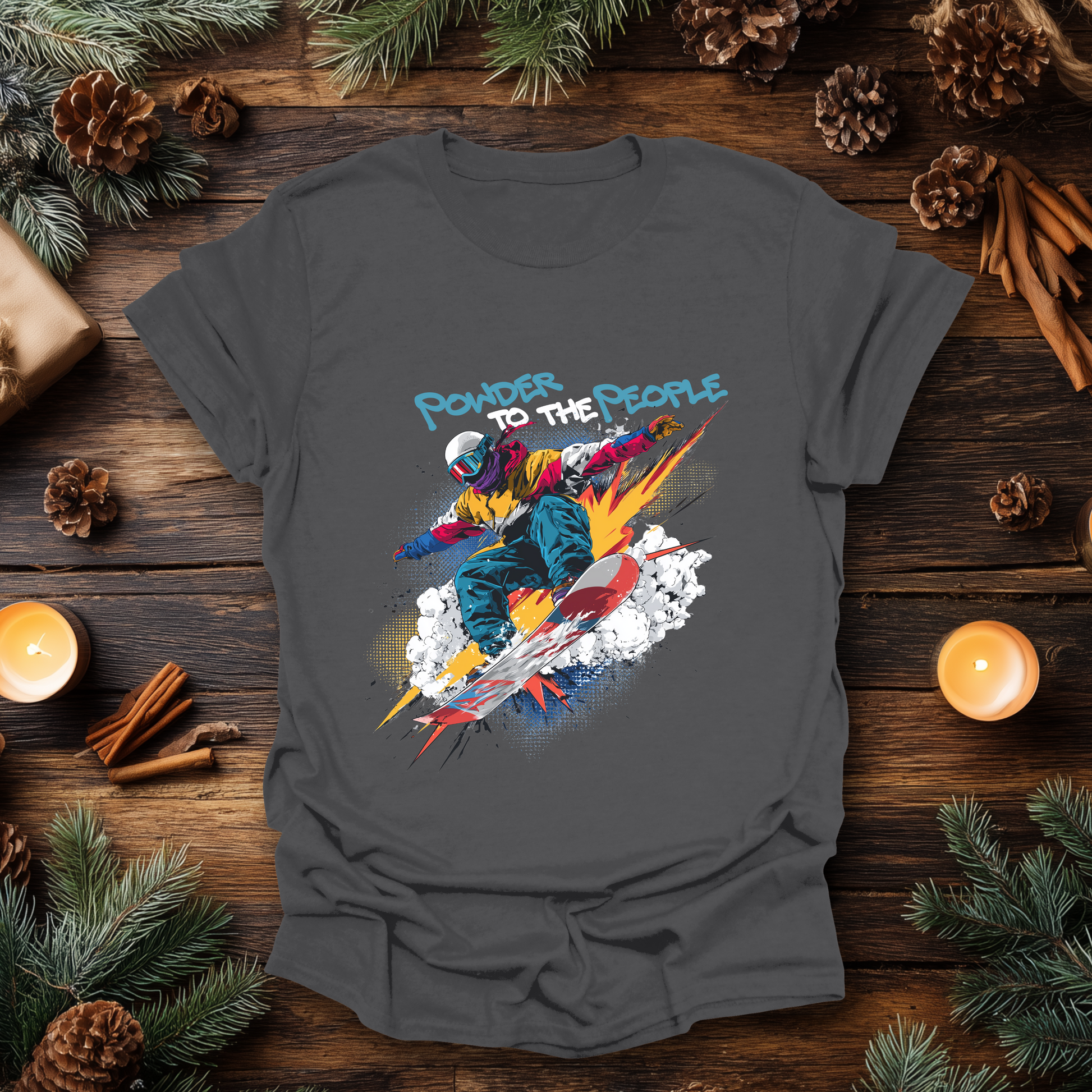 from 0 reviewsTake your style to new heights with our “Powder to the People” tee, a high-energy snowboarding design exploding with color and motion. Perfect for shredders, powder hounds, and anyone who lives for fresh tracks, this shirt brings the thrill of the slopes to your everyday wardrobe. Whether you’re hitting the mountain, heading to a holiday party, or just chilling après-ski, this bold graphic tee is built for adventure.