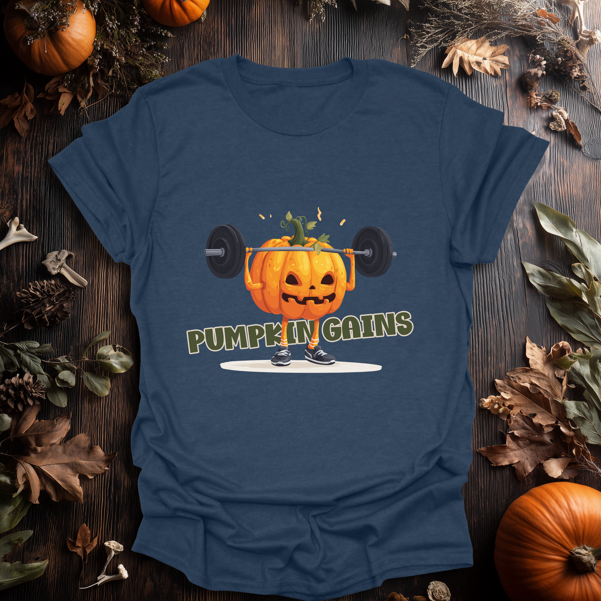 from 0 reviewsSmash your workouts and your Halloween style with the Pumpkin Gains tee! Featuring a hilarious jack-o’-lantern pumping serious iron, this design is perfect for fitness junkies, gym rats, and anyone who loves to lift heavy (and eat heavy) during spooky season. With bold graphics and a playful pun, it’s the ultimate mashup of strength and spirit. Wear it to the gym, a Halloween party, or just to flex your seasonal gains.