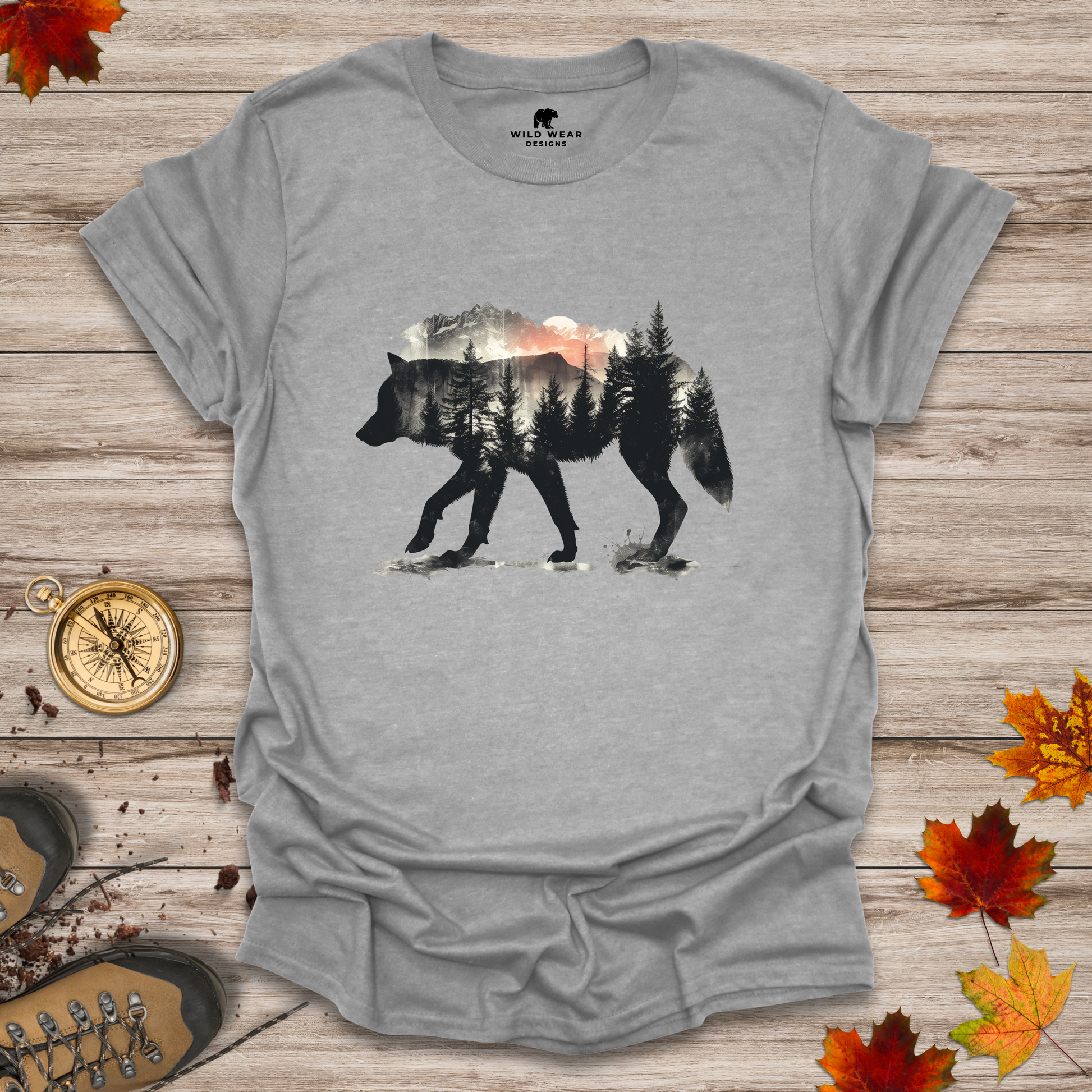 This t-shirt captures that magic hour where golden skies meet rugged trails, featuring a bold silhouette of a wolf roaming free under a radiant sunset. Whether you're an adventurer, a nature lover, or someone who just knows when to disappear into the trees, this tee is your uniform.