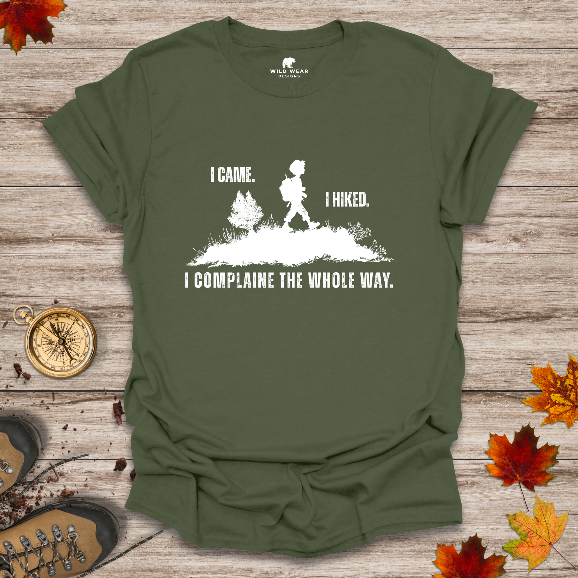 from 0 reviewsPerfect for anyone who loves nature… but maybe not every part of the journey. Whether you're dragged on hikes by friends, or you're the designated trail whiner, this shirt is your badge of (dis)honor. Crafted for comfort, this shirt pairs effortlessly with sarcasm, sore feet, and plenty of trail snacks.