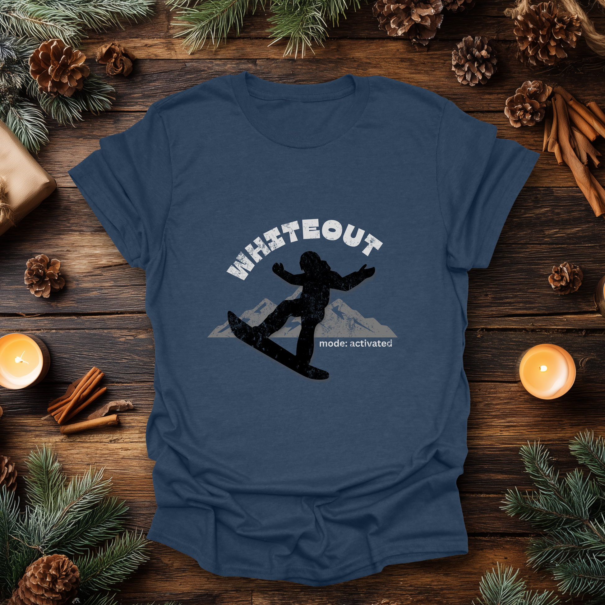 The Whiteout Mode: Activated Tee is designed for snowboarders, skiers, and winter adventure lovers who thrive on chaos, powder days, and questionable visibility.
